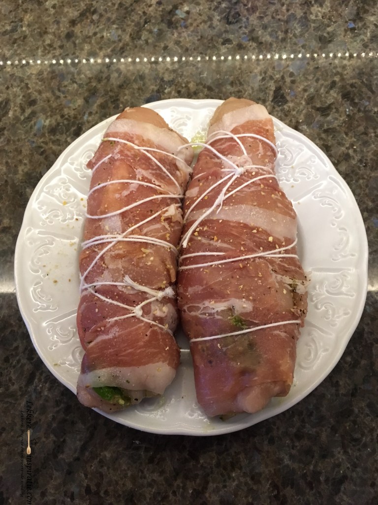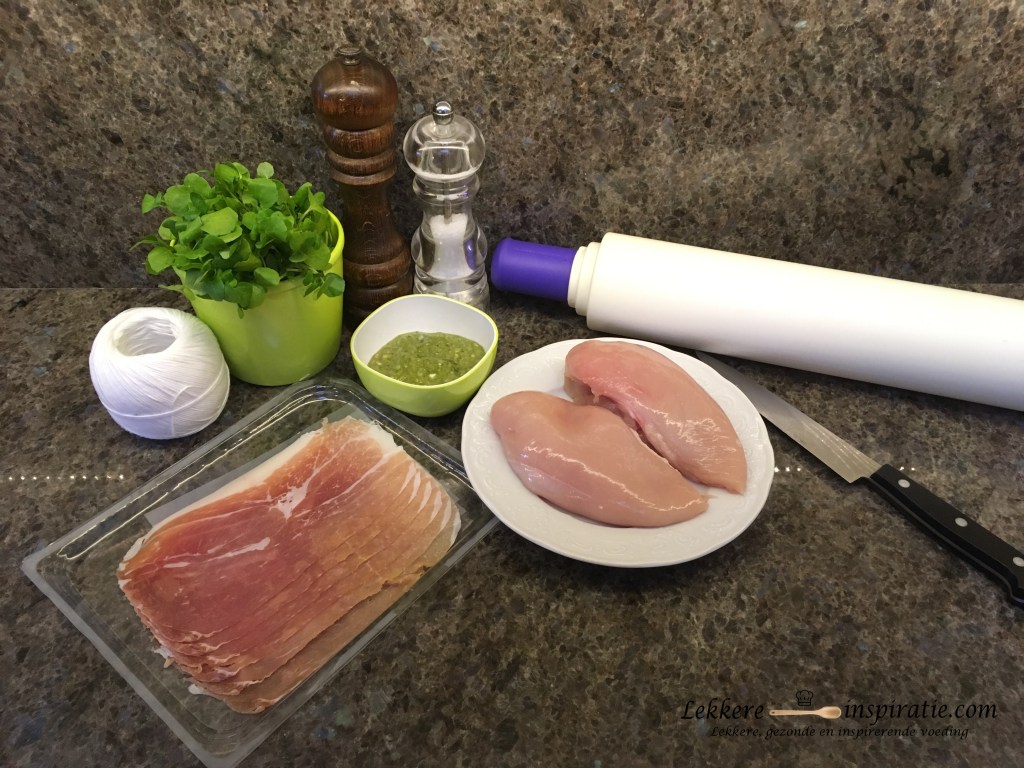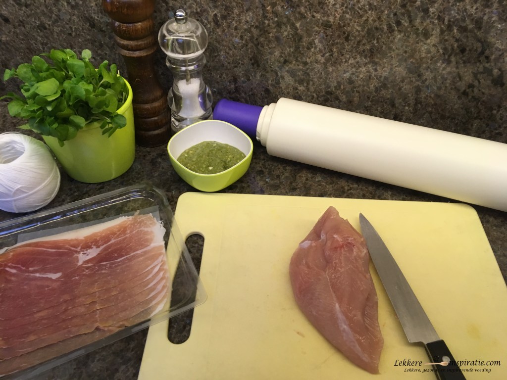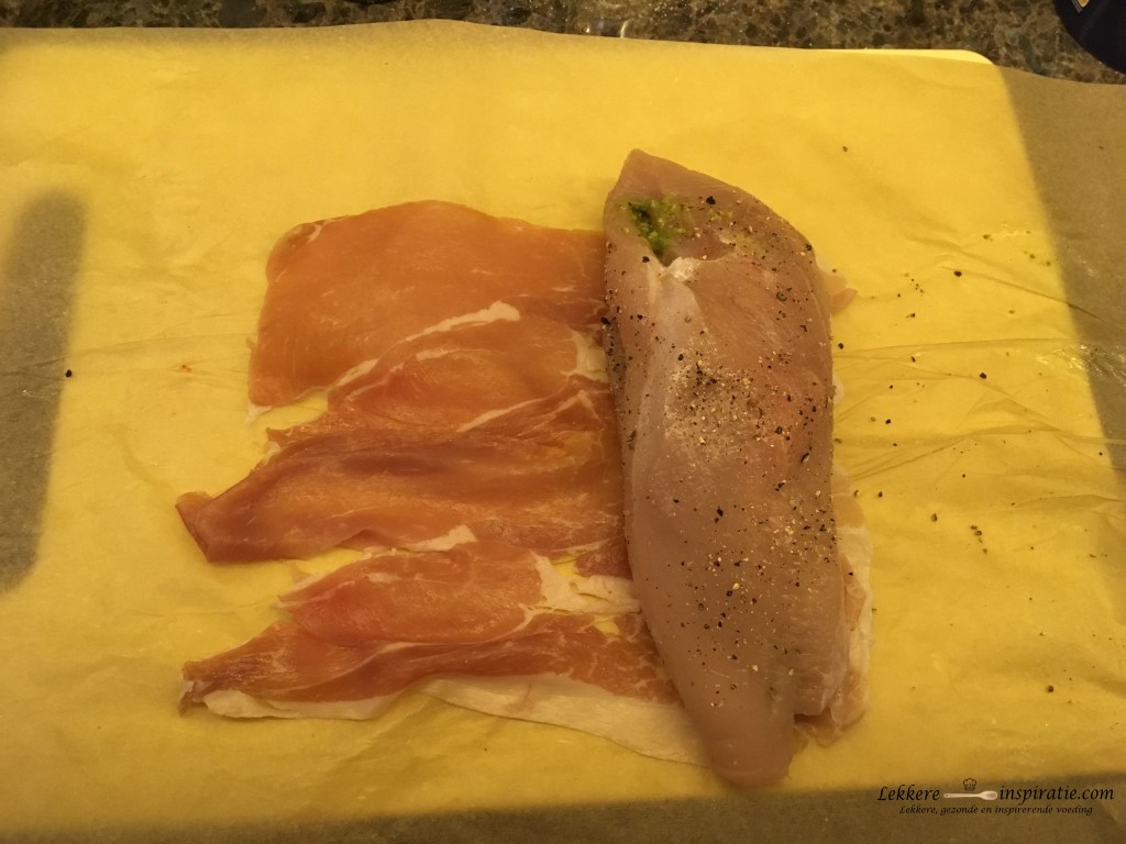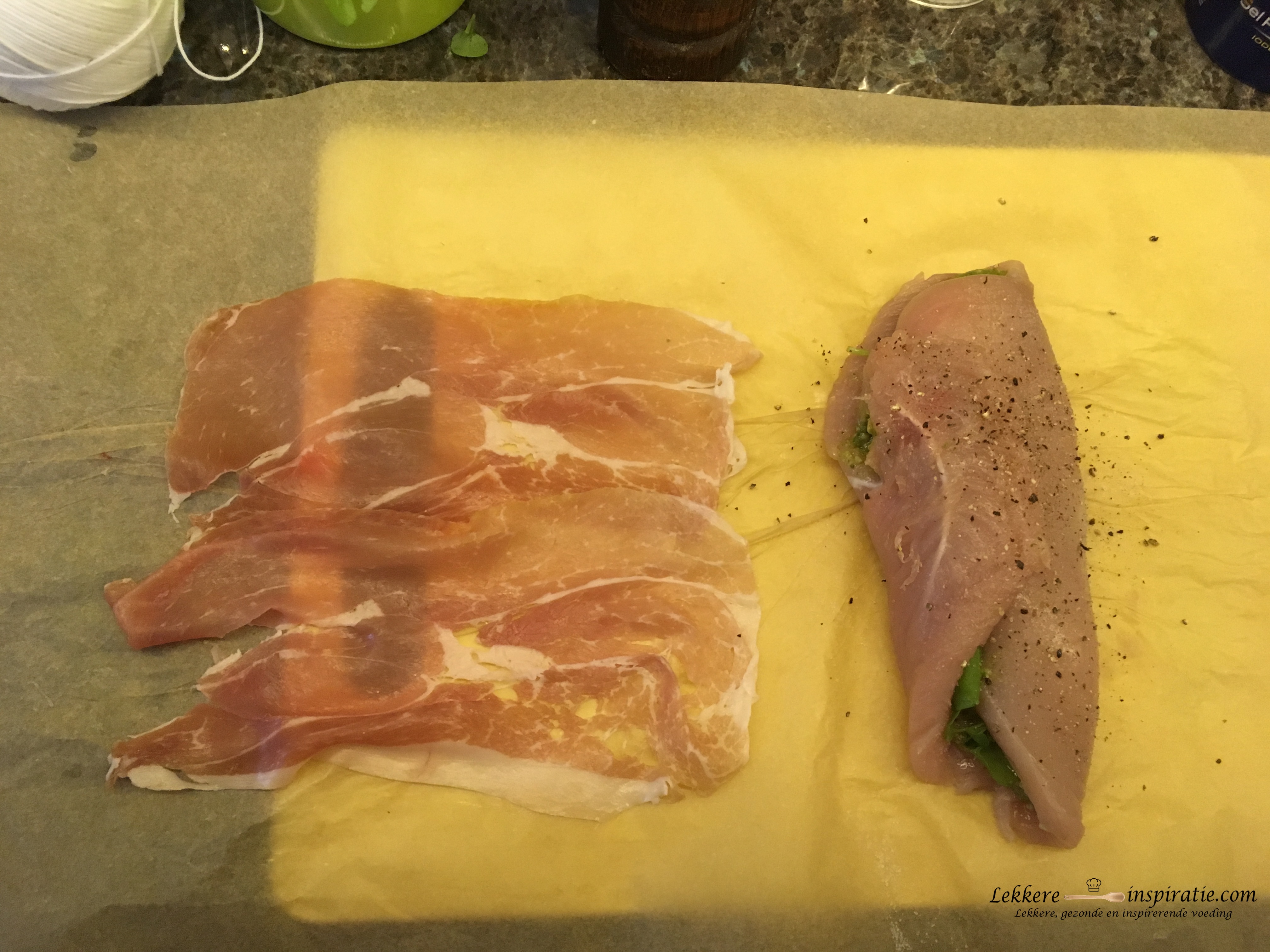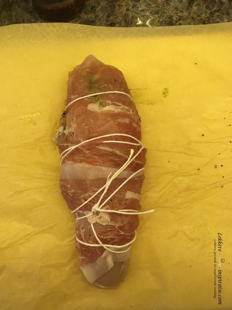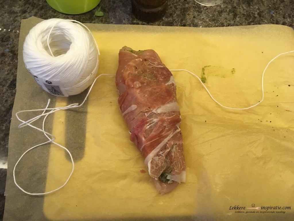 - stap 9: rol de kiprollade in de gedroogde ham.