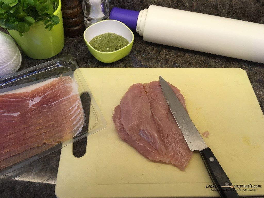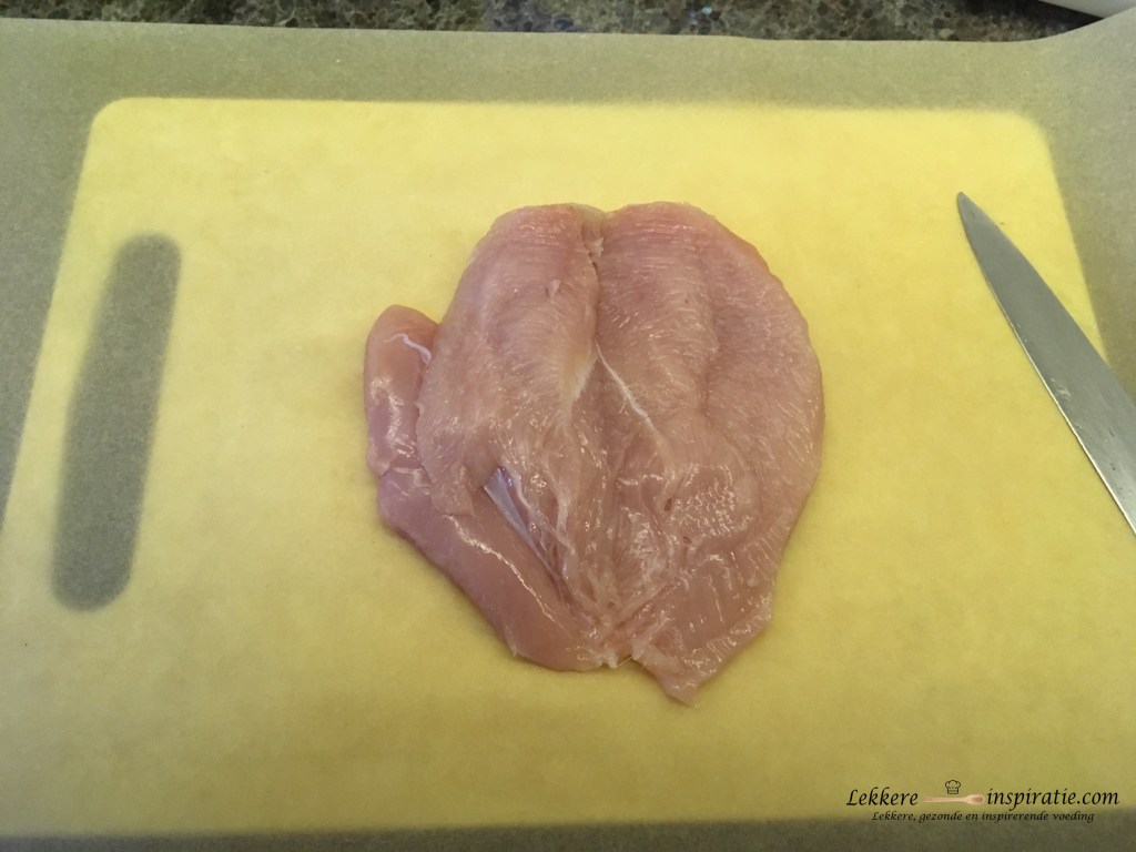 - Gebruik een scherp mes om de kip te snijden en let op dat je de kipfilet niet helemaal door snijdt.