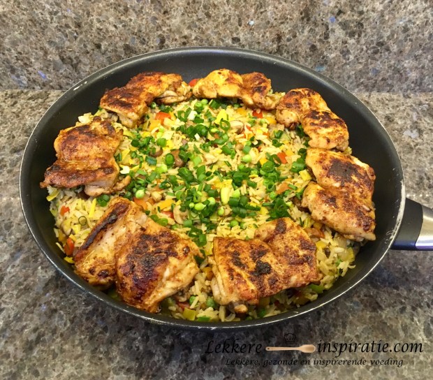Deze lekkere gebakken rijst met groenten is lekker als eenpans- of bijgerecht. Aan het recept kan je eventueel nog stukjes (gebakken) vlees, vis, schaal-/schelpdieren en/of iets plantaardig toevoegen naar smaak (zie tips & tricks). Ook met de groenten kan je variëren naar smaak en seizoen. Ik gebruik rijst in handige kookbuiltjes maar je kan ook ‘losse’ rijst gebruiken. Klik onder de foto voor o.a. het recept.