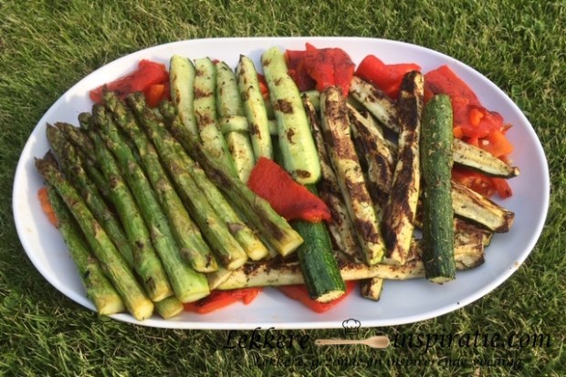 Je kan allerlei soorten groenten klaarmaken op de barbecue. Deze keer heb ik gekozen voor paprika, courgette, komkommer en groene asperges.