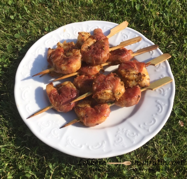 - Wikkel elke scampi in een stukje gedroogde ham of spek.
