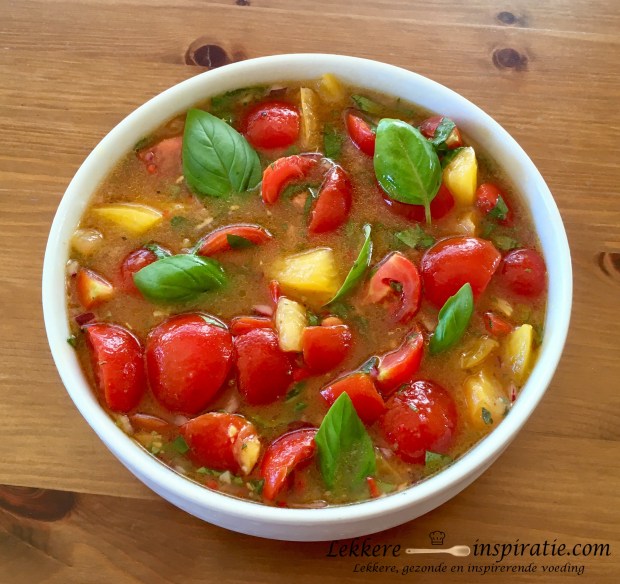 - Laat min. 15-30 minuten staan zodat de tomaten een beetje kunnen marineren.