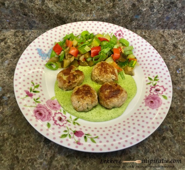 Deze gehaktballetjes zien er gewoon uit maar hebben een hart van pesto. De pesto kan je makkelijk zelf maken maar het kan ook met kant-en-klare varianten (zie tips & tricks). Ik serveer de gehaktballetjes met een simpele pestosaus, gestoofde groenten (en volkoren pasta) maar je kan het ook combineren met andere ingrediënten. Klik onder de foto voor het lekkere recept……