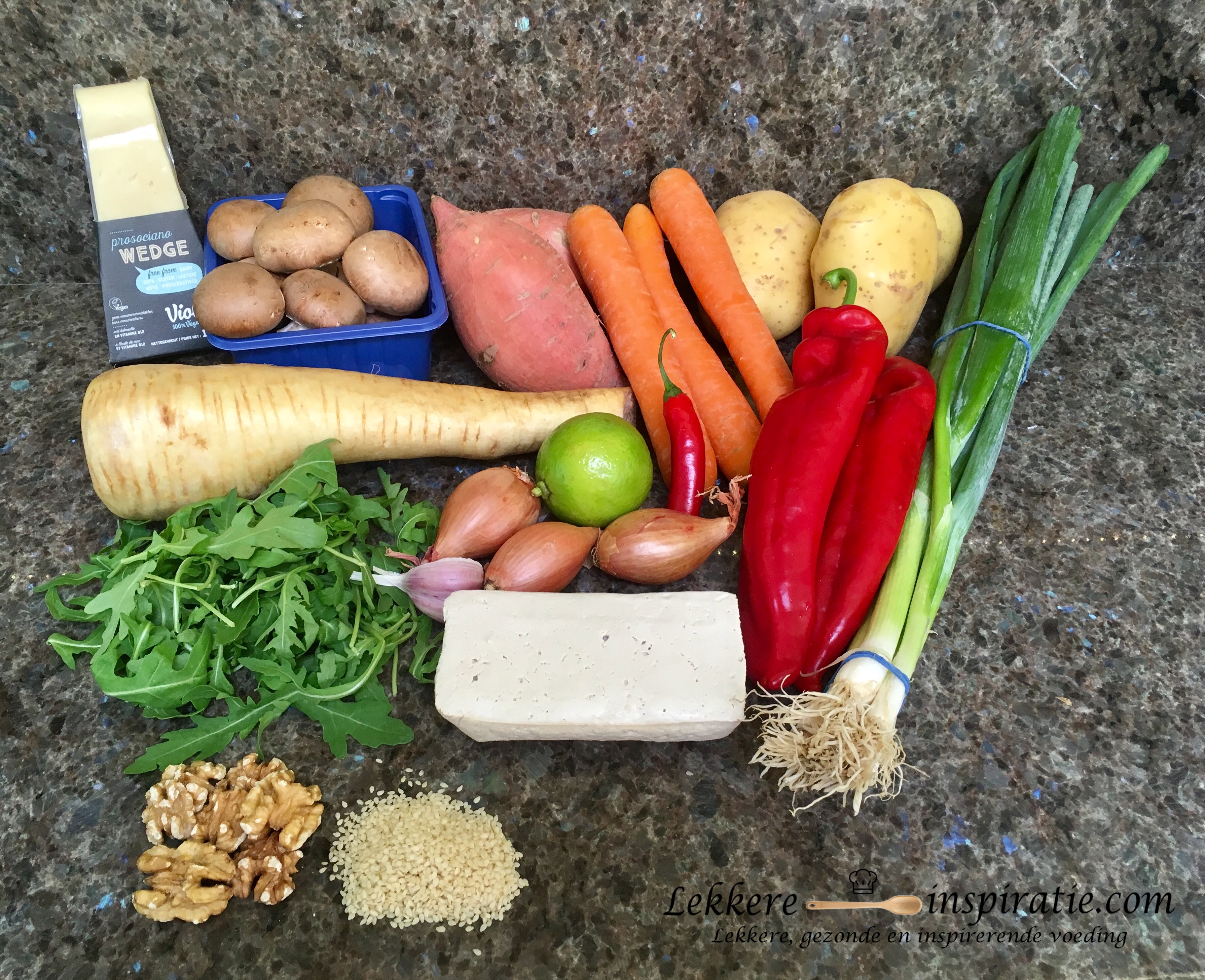 - Je kan ook andere groenten gebruiken naar smaak bv. knolselder, koolrabi, butternut-pompoen,….