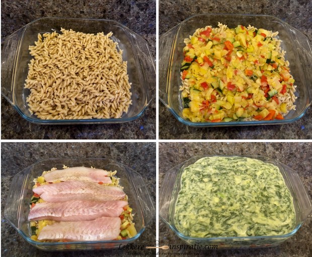 - Nu kan je de ovenschotel samenstellen (zie ook foto):