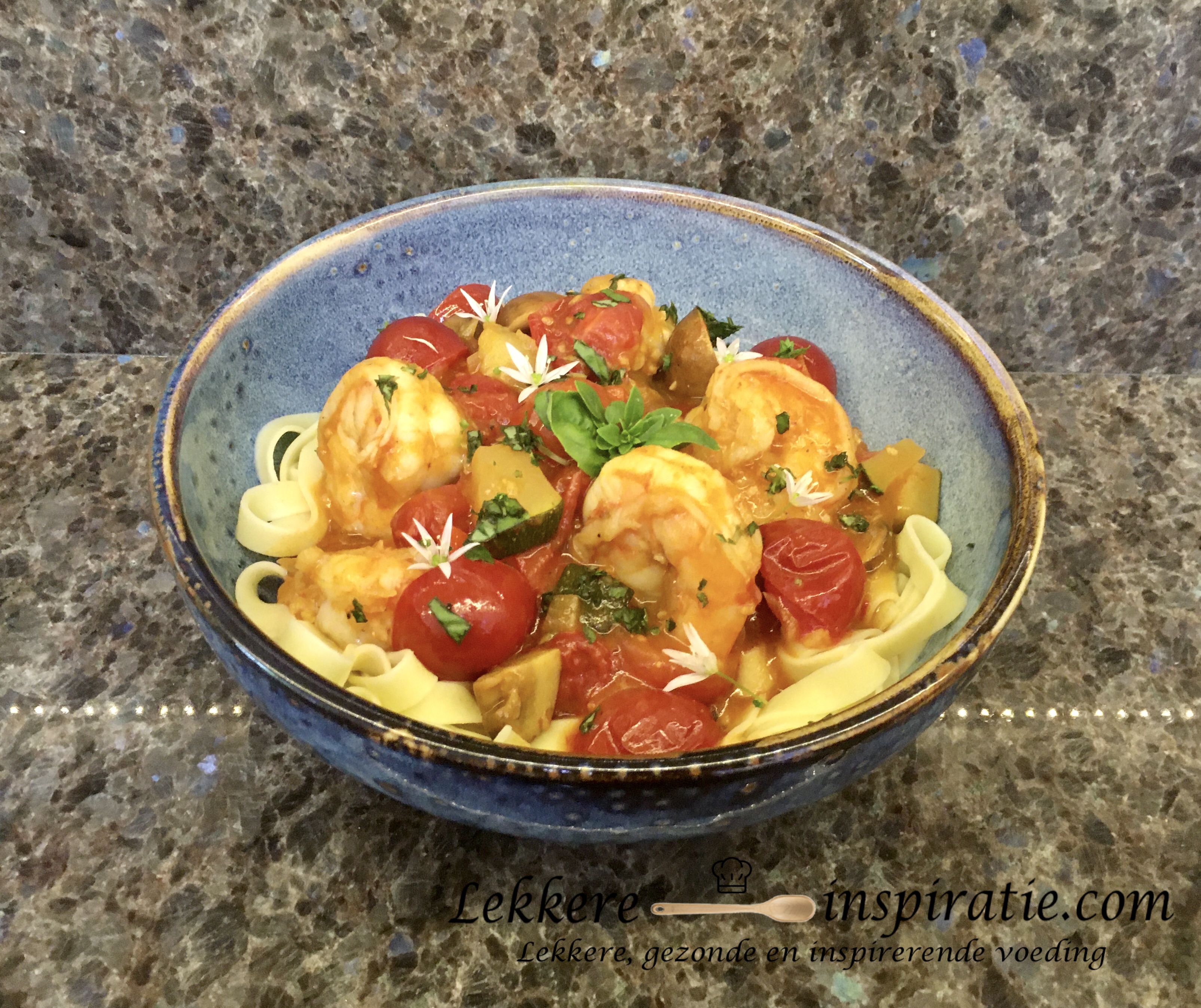 Dit gerecht is lekker en makkelijk om te maken. De kerstomaatjes zorgen voor een leuke toets en het oogt mooi. Je kan eventueel ook andere groenten en kruiden gebruiken naar smaak. Ik serveer het gerecht met pasta. Klik onder de foto voor o.a. het recept…