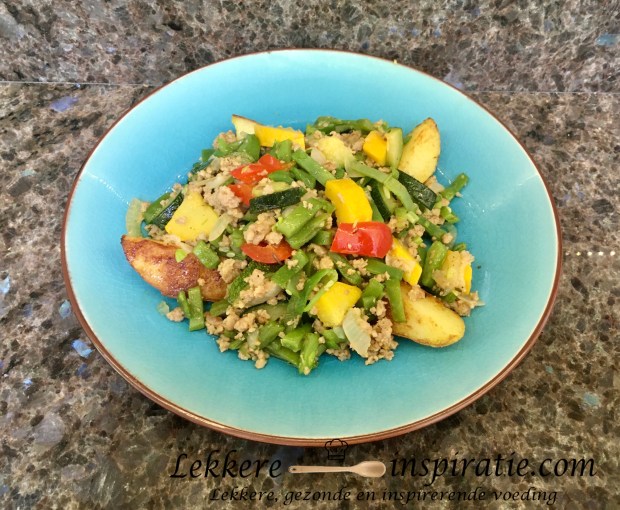 Dit lekkere recept is geïnspireerd op de oogst uit de moestuin. Ook andere groenten kan je toevoegen aan dit gerecht. Je kan het gehakt eventueel ook weglaten of vervangen door iets plantaardig,…. Onder het recept vind je een aantal tips voor een snellere versie van dit recept. Klik onder de foto voor o.a. het recept…..
