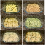 - Doe een beetje van de bechamelsaus met spinazie op de bodem van de ovenschaal.