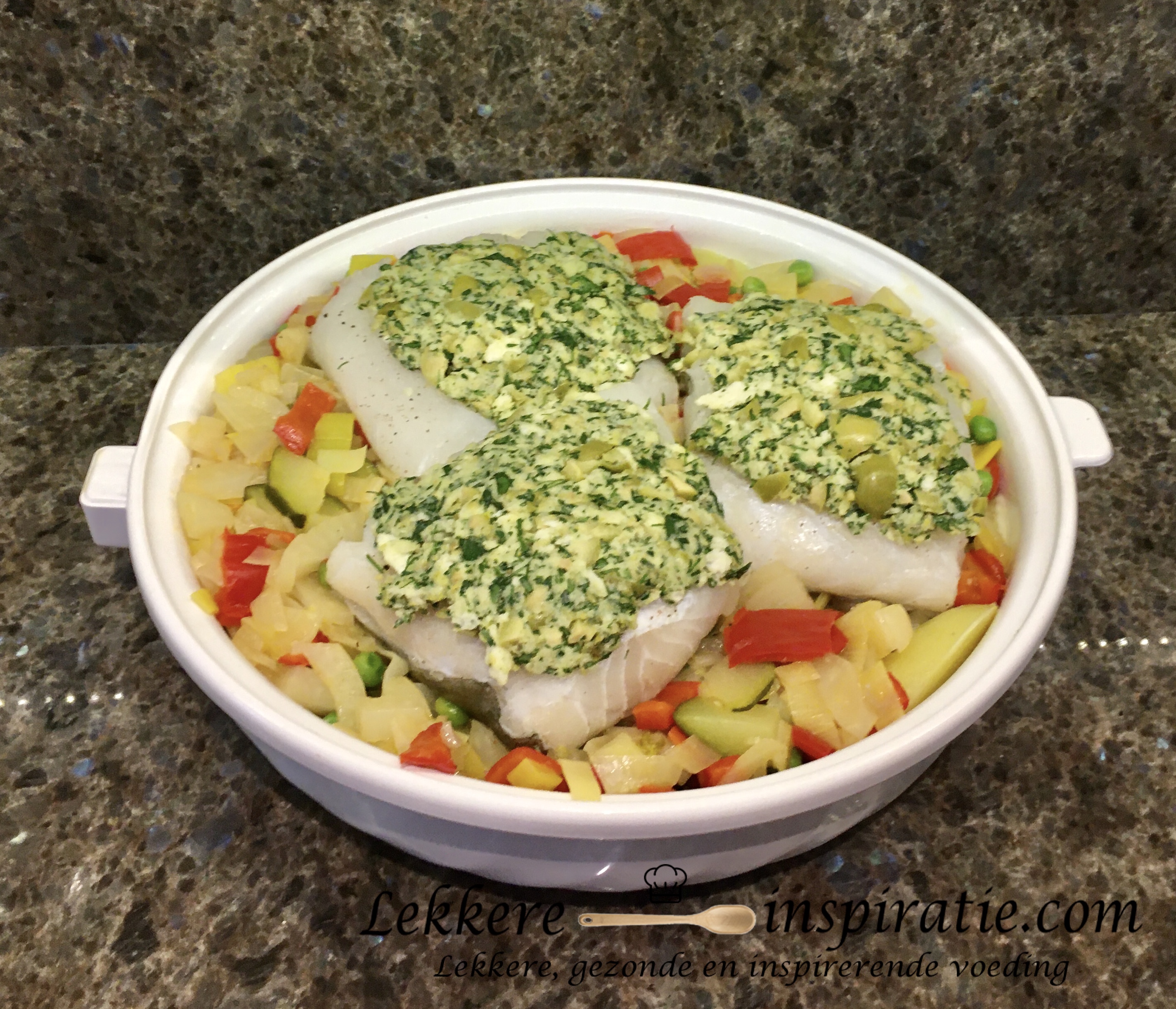 Dit gerecht oogt mooi en zit boordevol smaak. Het kruidenkorstje geeft een kruidige toets aan de vis. In de ovenschotel zit ook een laag aardappelen en een laag groenten die het gerecht compleet maken. Klik onder de foto voor o.a. het lekkere recept…