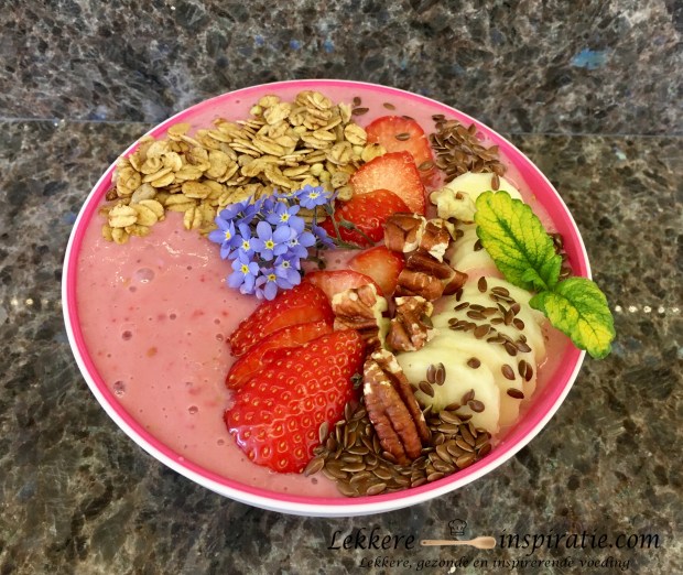 Deze smoothie om te lepelen is eens iets anders en zit boordevol fruit. Je kan variëren met het fruit en de afwerking naar smaak en seizoen. Het is lekker bij het ontbijt, als tussendoortje, als dessert,… Klik onder de foto voor o.a. het recept….