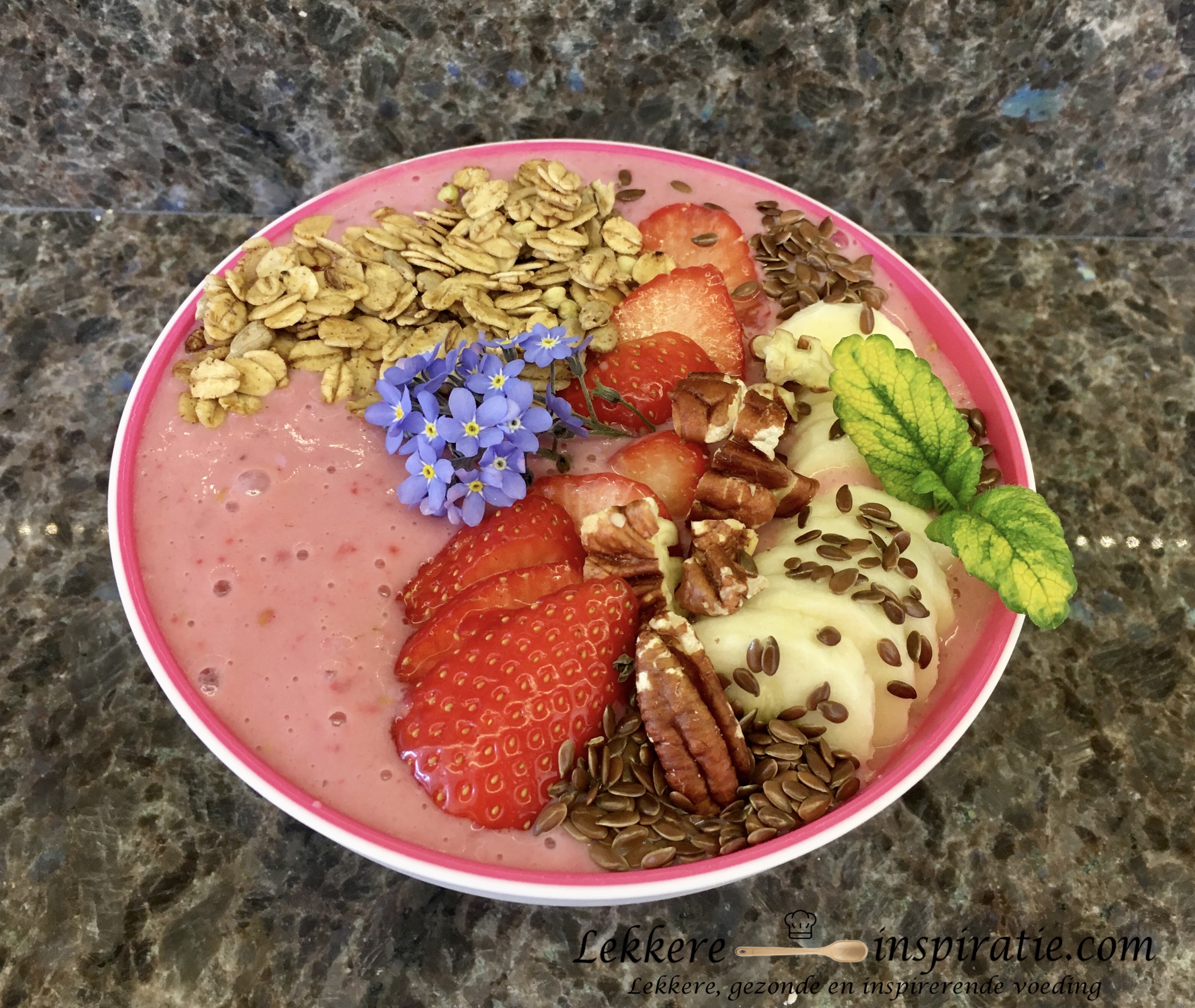 - Je kan de smoothie bowl afwerken naar eigen smaak met noten, zaden, pitten, gedroogd fruit,…..