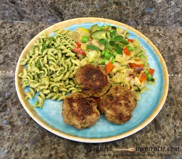 Voor dit gerecht haalde ik inspiratie uit de moestuin. Ik combineer de groenten uit de tuin met kruidige hamburgertjes en pasta pesto. Je kan variëren met de groenten naar smaak en seizoen. De verschillende deelgerechten kan je ook combineren met andere gerechten. Klik onder de foto voor o.a. de lekkere recepten….