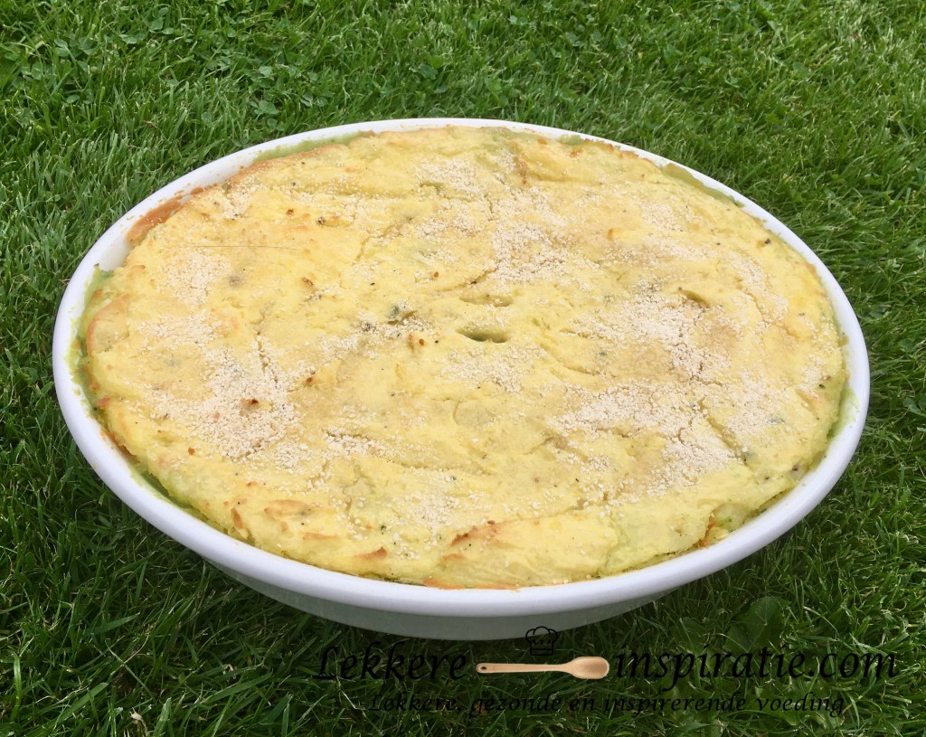 - Zet in de voorverwarmde oven op 200°C-220°C voor ± 15-20minuten, de puree mag bovenaan gekorst zijn en een beetje gekleurd.