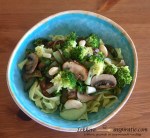 - Serveer de pasta met de broccolisaus en de geroerbakte groenten.