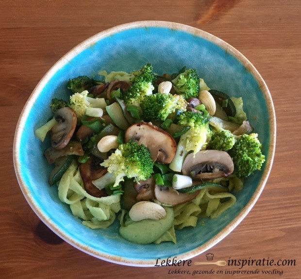 Deze pasta zit boordevol groenten en smaak. De saus is op basis van broccoli en cashewnoten waardoor deze gezonder is dan een klassieke roomsaus. Het is een vegetarisch (en vegan) recept, maar je kan er eventueel ook iets van vis of vlees bij serveren. Klik onder de foto voor o.a. het recept…