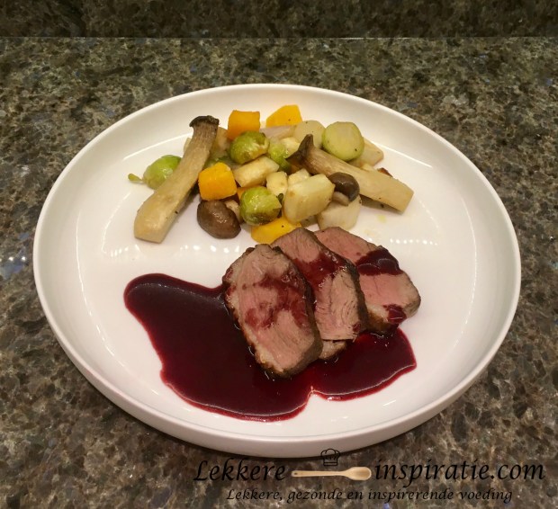 Dit feestelijke gerecht oogt mooi en is lekker. De saus zorgt voor een speciale toets aan het gerecht. Ik serveer het met winterse ovengroenten. Met ovengroenten kan je eindeloos combineren en variëren naar smaak en seizoen. Serveer dit feestelijke gerecht bv. met kroketjes, rosti’s,… naar smaak. Klik onder de foto voor o.a. het recept…