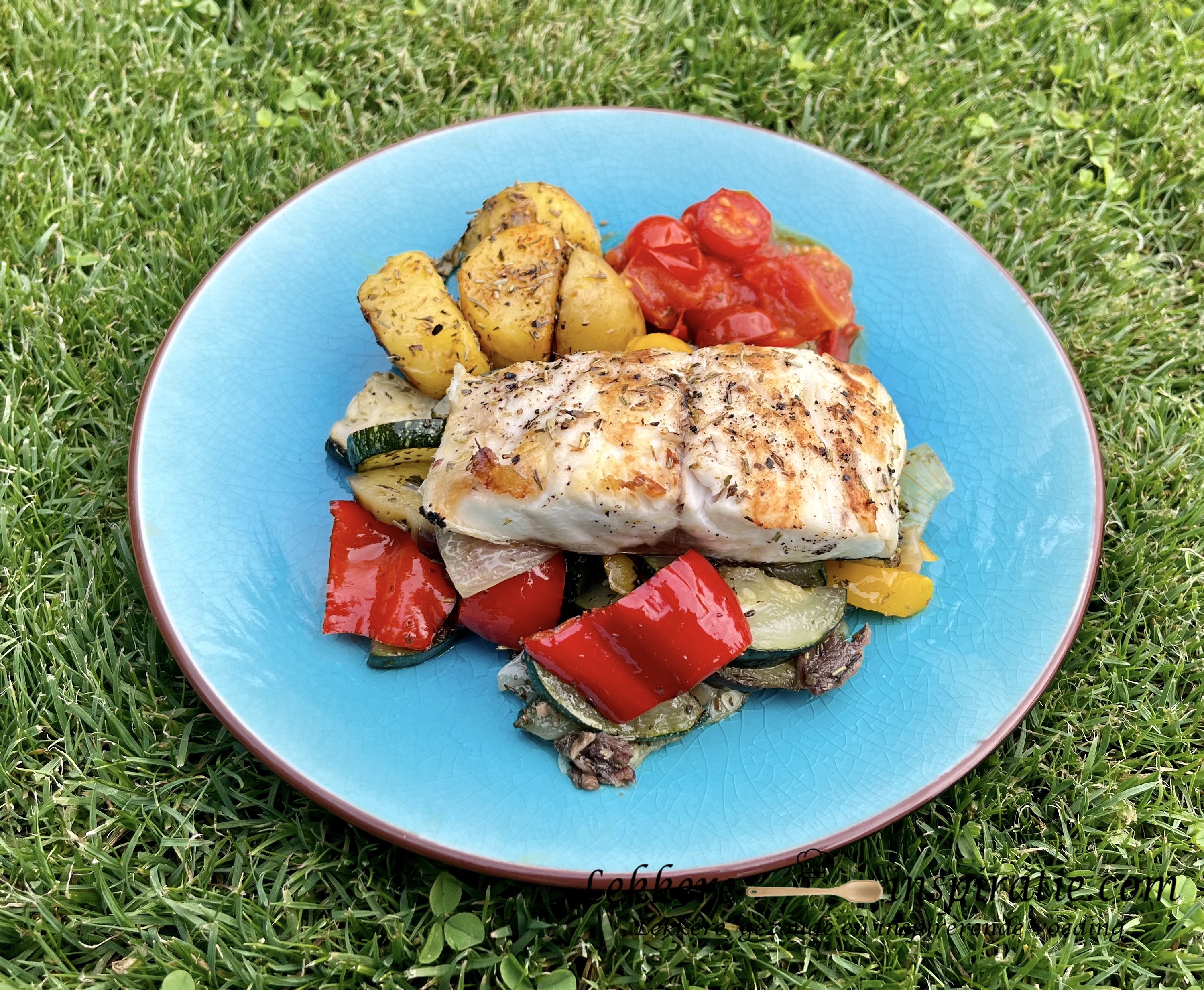 - De baktijden kunnen verschillen van barbecue tot barbecue. Let op dat de barbecue goed opgewarmd is voordat je begint te bakken. Zet eerst de groenten er op en na ± 15-20 minuten kan je de aardappelen en tomaatjes er ook op zetten. Als de groenten, aardappelen,… bijna (of helemaal) gaar zijn, kan je de vis bakken. De zeebaars heeft een zeer korte gaartijd en die is o.a. afhankelijk van de grootte van de stukken vis.