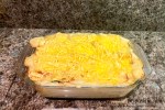 - Leg terug een laag lasagne vellen, dan bechamelsaus, witloof, zalm, courgette en ga zo verder tot de schotel gevuld is.