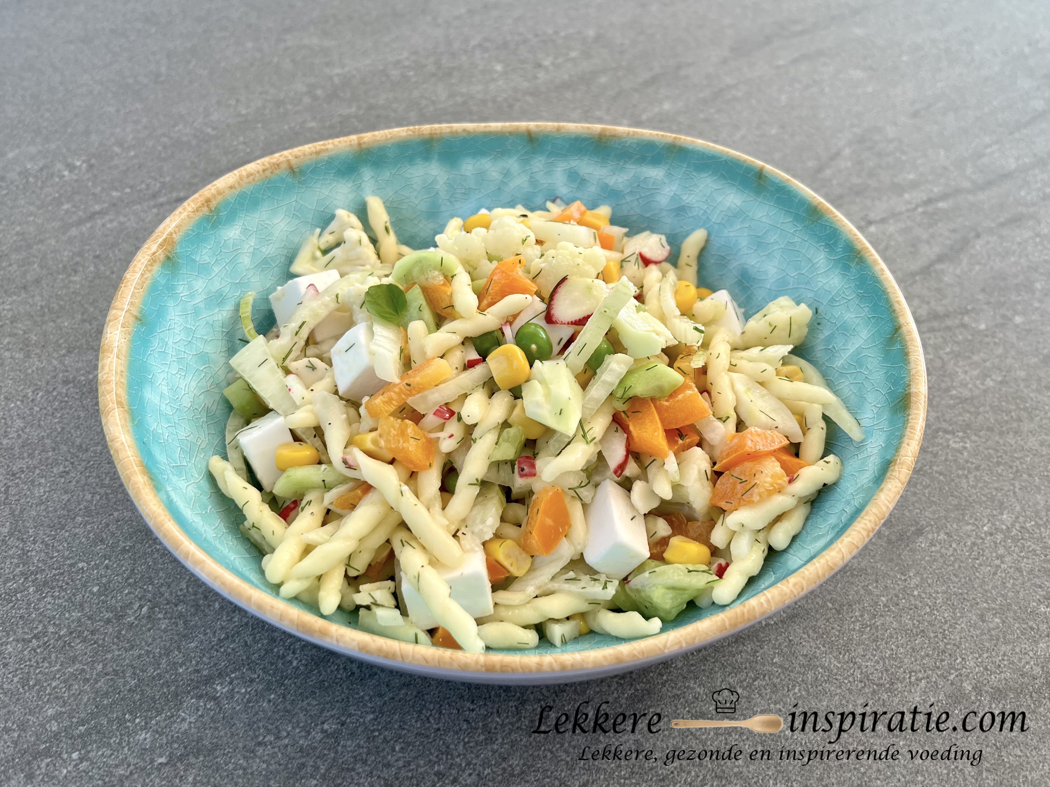 Pastasalade is voor vele een echte zomertopper. Je kan er eindeloos mee variëren naar smaak. Het is lekker als maaltijdsalade of als bijgerecht bij o.a. een barbecue, picknick, brunch,…. Klik onder de foto voor o.a. het recept….