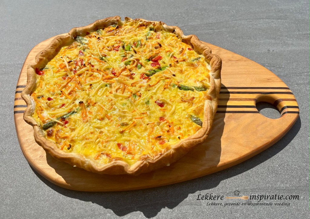 Deze taart oogt mooi en zit boordevol groenten. Je kan met de groenten variëren naar smaak en er ook restjes groenten in verwerken. Deze taart is lekker als lunch, bij een brunch om mee te nemen,…. Klik onder de foto voor o.a. het recept….
