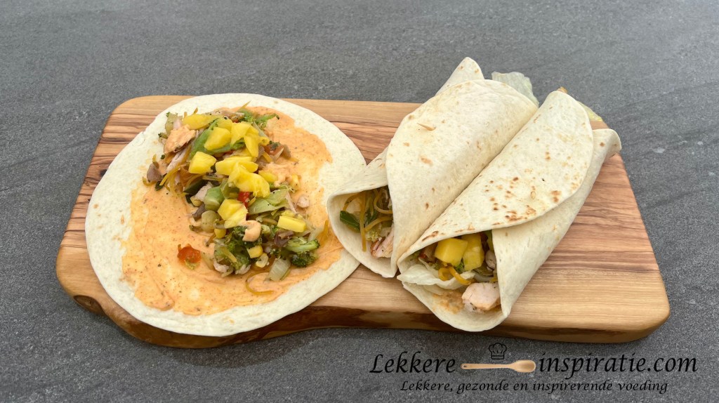 Ga verder naar recept…Wraps met geroerbakte groenten en kip