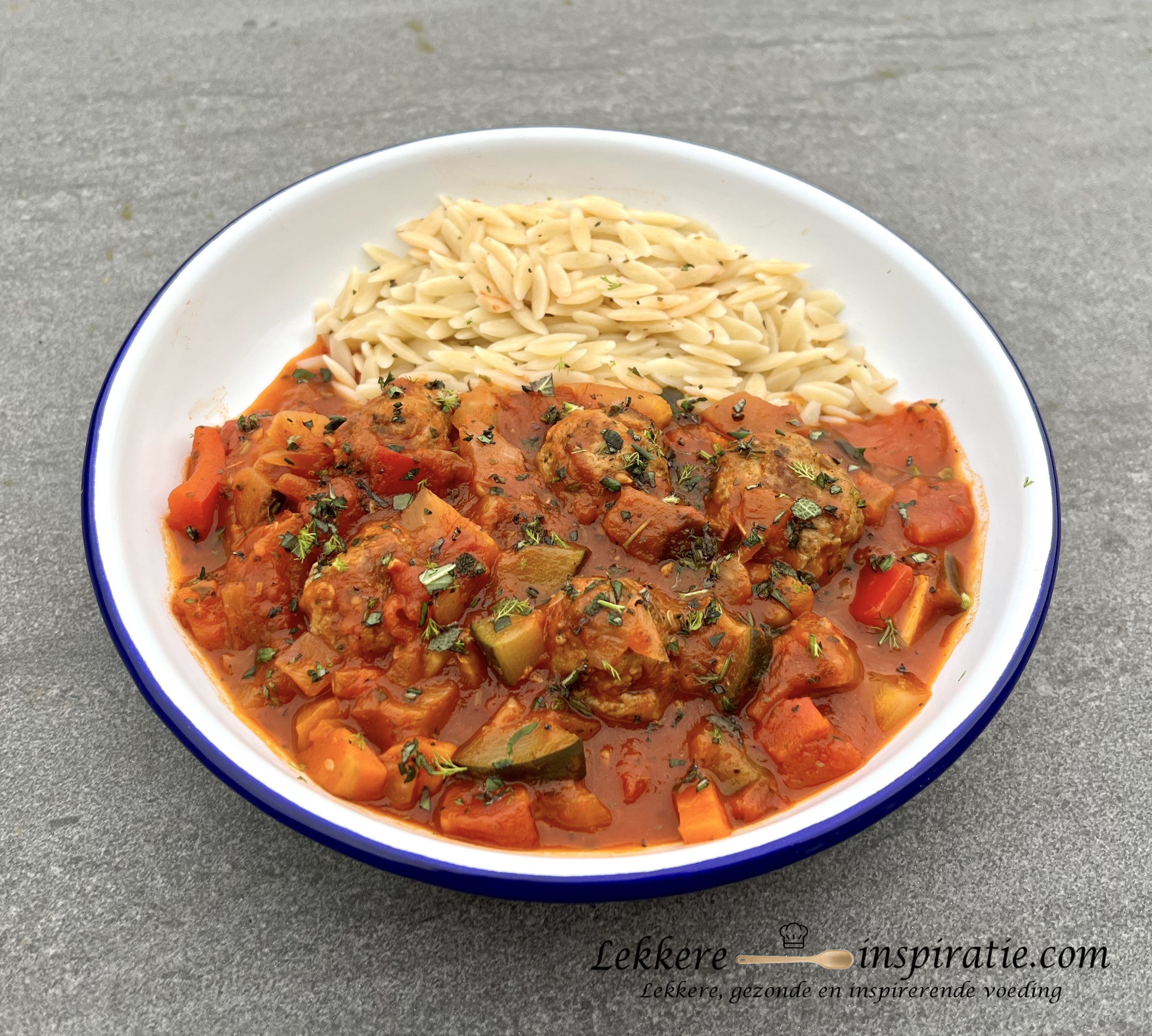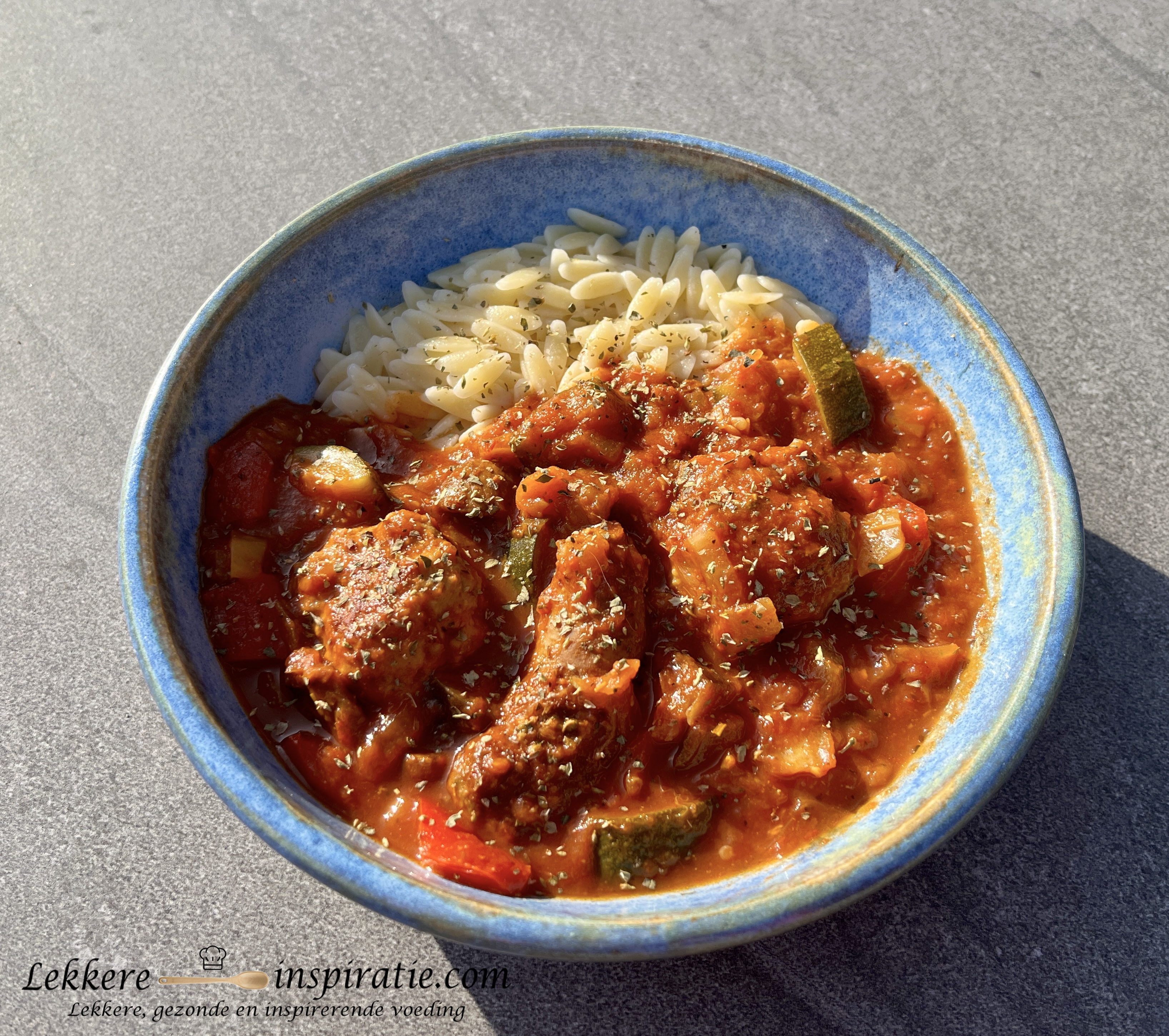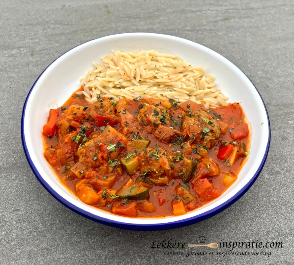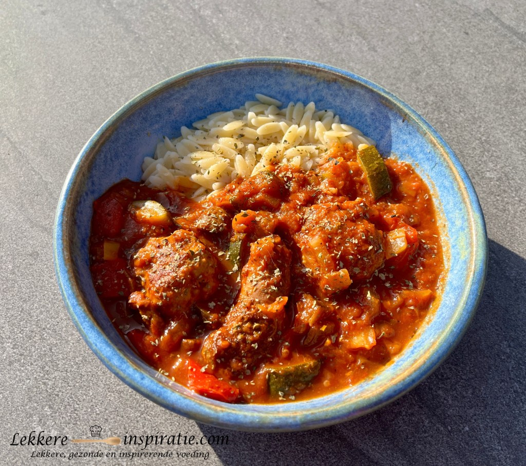 Dit is een lekkere twist op de klassieke balletjes in tomatensaus. Er zitten extra groenten in en naast balletjes kan je ook worstjes toevoegen voor een extra twist. Ben je geen fan van tomaten of allergisch, dan staat er bij tips & tricks een alternatieve versie zonder tomaten. Klik onder de foto voor o.a. het recept,….