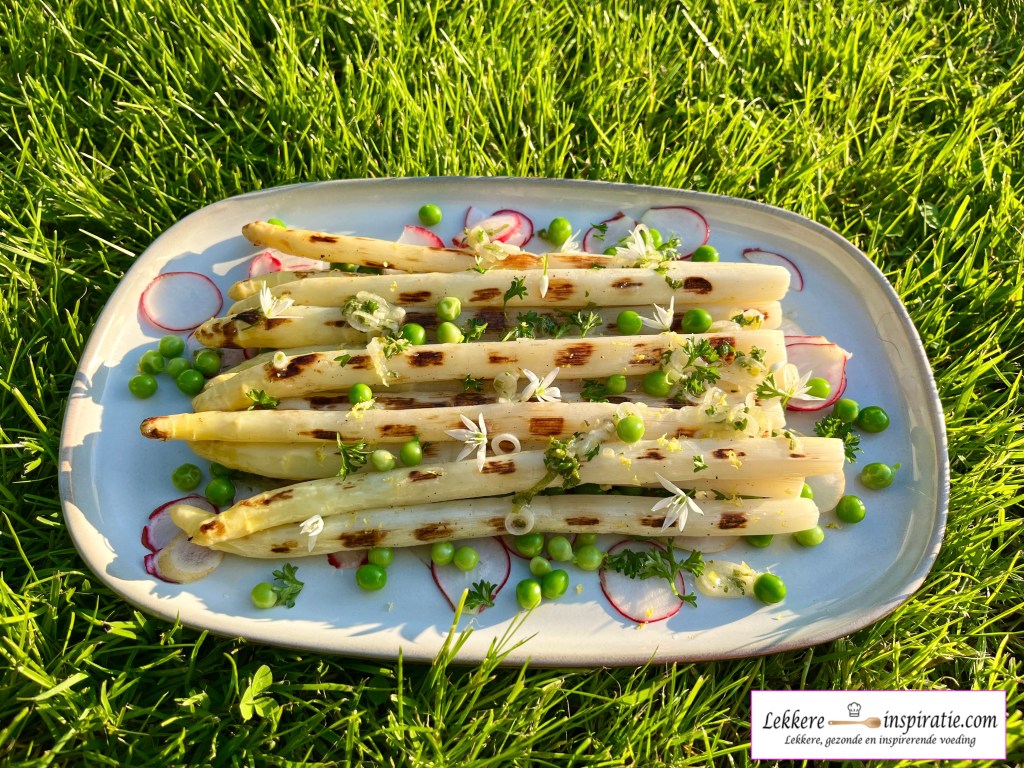 Deze salade viert de lente op haar best: met knapperige radijsjes, verse erwtjes en lekkere witte asperges van de grill. Serveer de salade bv. als lunch of als bijgerecht bij bv. een barbecue, picknick,… Klik onder de foto voor o.a. het recept…..